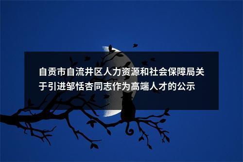 原标题:自贡市自流井区人力资源和社会保障局 关于引进邹恬杏同志作为高端人才的 公 示
