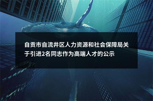 原标题:自贡市自流井区人力资源和社会保障局 关于引进董丁睿等2名同志作为高端人才的公示