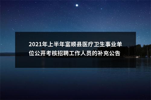 声明:专注 2021年上半年富顺县医疗卫生事业单位公开考核招聘工作人员的补充公告 相关岗位分析;专业指导面试技巧;保障就业成功概率。